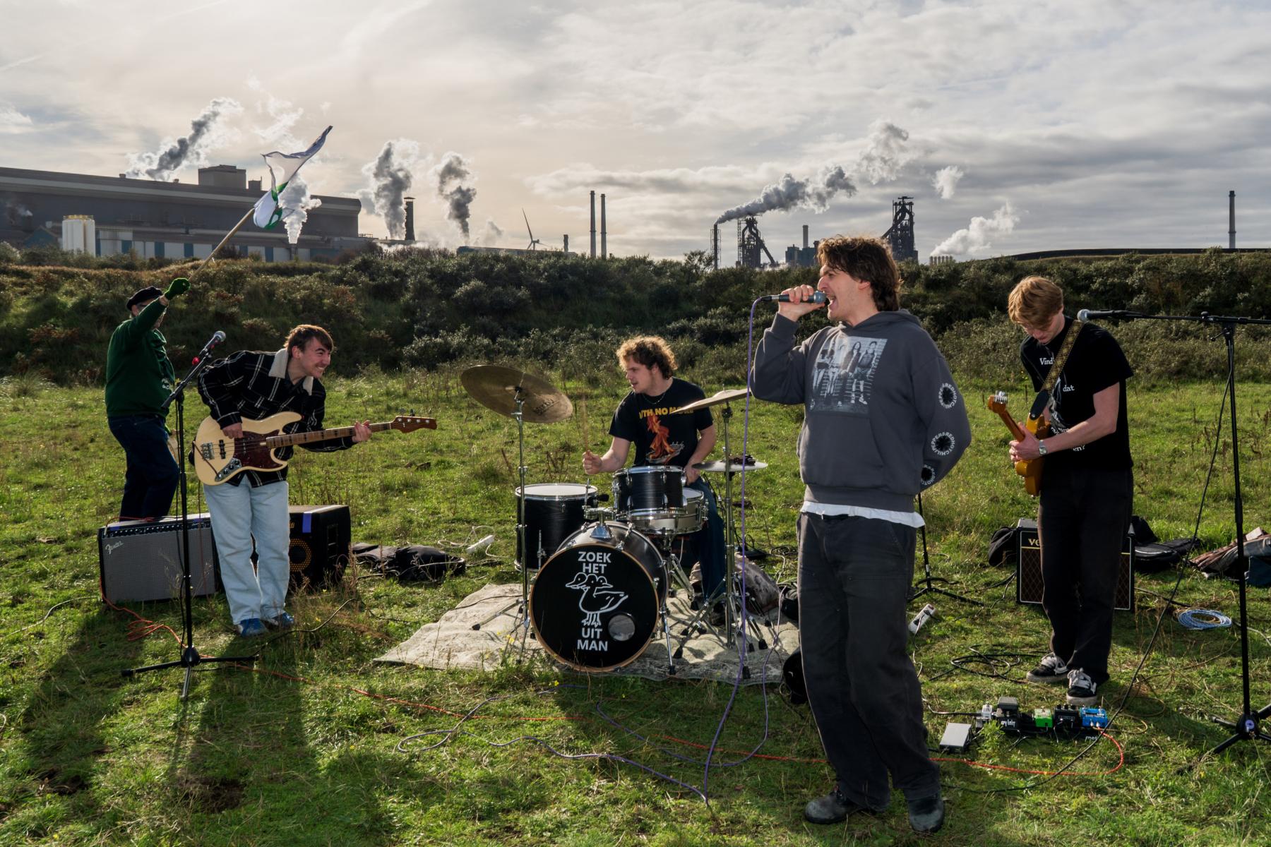 ZOEKHETUITMAN is een protestpunkband die weinig interesse heeft in nuance. De nummers zijn snel, luid en gericht op alles wat volgens hen niet klopt. Geen omwegen en geen verpakte boodschap. Wat ze willen zeggen, zeggen ze gewoon. Dat hoor je terug in een sound die strak en direct wordt gespeeld. Nummers als Woningnood, Gooi de Grenzen Open en De Fik Erin zetten meteen de toon, terwijl tracks als AIVD, PFAS en De Pyramide van Geweld laten zien waar de band zich tegen afzet.